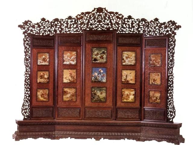 清 紫檀边座白檀心玻璃油画围屏