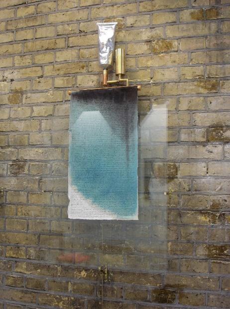 举个例子,艺术家ronald van der meijs的装置艺术中,便是记录了以印刷为工作的父亲与儿子之间的激烈对话,艺术家用油墨混合松节油,在展览的过程中渐渐被纸吸收,同时加入了采访录音利用低频率的声音震动传导给观众。