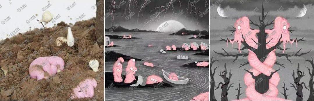 关于故事的体量,则是大小均可,重点还是“有血有肉”。比如汉艺学员L同学的《牙齿重生仪式》项目,有插画,也有装置,灵感来源就是她妈妈做的一个梦: