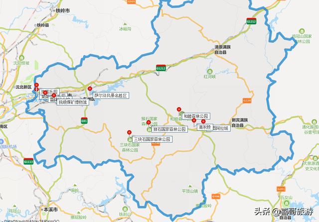 2、抚顺十大景点自驾游行程路线:抚顺-热高乐园-皇家海洋乐园-雷锋纪念馆-抚顺煤矿博物馆-三块石国家森林公园-猴石国家森林公园-赫图阿拉城-清永陵-和睦国家森林公园-萨尔浒风景名胜区-抚顺。