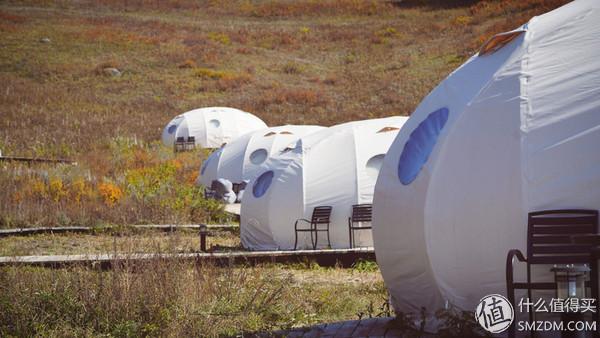 为了保护环境,喀纳斯保护区的酒店民宿都有定数,不能随意搭建盖房。最高端的,便是景区内唯一一家四星级酒店“禾木山庄”搭建的这寥寥四五间的星空别墅。黄灿烂的草原上,撒着几颗外星基地般的半球,每间都是颇具科幻感的纯白内外饰,洗漱沐浴一应俱全,躺在挂着白纱缦的大圆床上,就能透过天窗,一眼望尽整个喀纳斯的绝美星空~