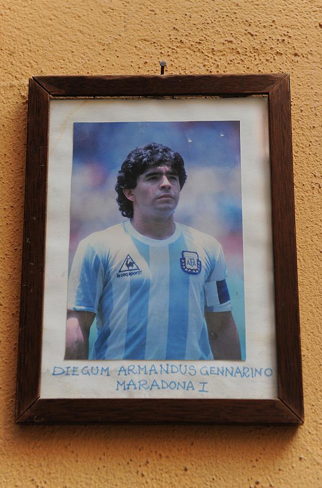 那不勒斯尼洛酒吧外的墙上挂着马拉多纳年轻时的照片。