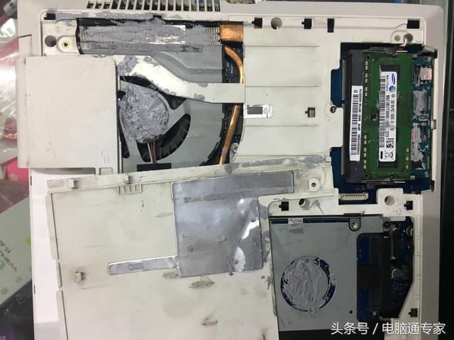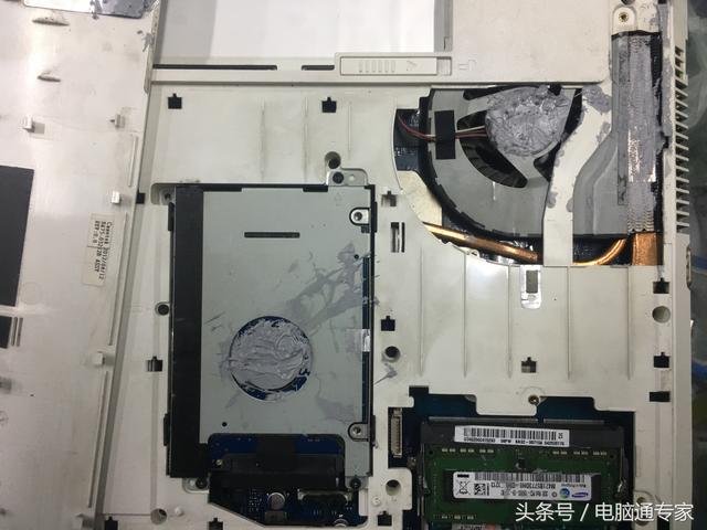 上图我们大家应该看的非常的直观了吧,这位朋友的机子是三星的,自己没有拆开就这样处理了,发现电脑还是非常的卡于是找到了我,第一眼看到后就是忍不住的捂着嘴笑了,不是笑他无知而是单纯的看着这种“神操作”笑,毕竟他不是专业的,可是平时生活中一点积累的经验都没有吗?不过也的确挺佩服他的胆量的,难道就不怕把电脑弄坏了吗?我们在来给这几个硬件来几张特写的照片。