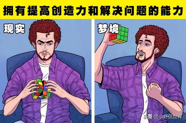当我们做梦的时候,大脑处于不同的神经生理状态,这会让我们跳出常规的思维框架。因此可能会帮助我们解决我们在清醒时无法解决的问题。在这种状态下,我们会体验到更高的大脑活动,这反过来使我们的大脑更容易提供创造性和解决问题的方案。
