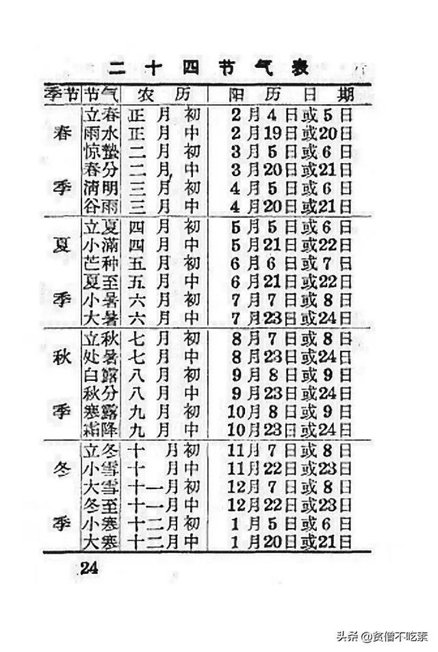 阳是”太阳”,阴是”太阴”即月亮,所以我国传统的农历实际上是阴阳合历。地球绕太阳一周360度,平均24等分为24节气,以阳历(公历)划分:立春、雨水、惊蛰、春分、清明、谷雨、立夏、小满、芒种、夏至、小暑、大暑、立秋、处暑、白露、秋分、寒露、霜降、立冬、小雪、大雪、冬至、小寒、大寒。(其中又分:上半月所在的十二个节气和下半月所在的十二个中气,它们相互交替,其中中气为:雨水、春分、谷雨、小满、夏至、大暑、处暑、秋分、霜降、小雪、冬至、大寒),以“立春”节开始,以“大寒”气结束,“节”和“气”交替周而复始。所以节气的定义是以地球的运行为准的,节气的日期都是固定的,上半月基本是5号前后,下半月20号前后。