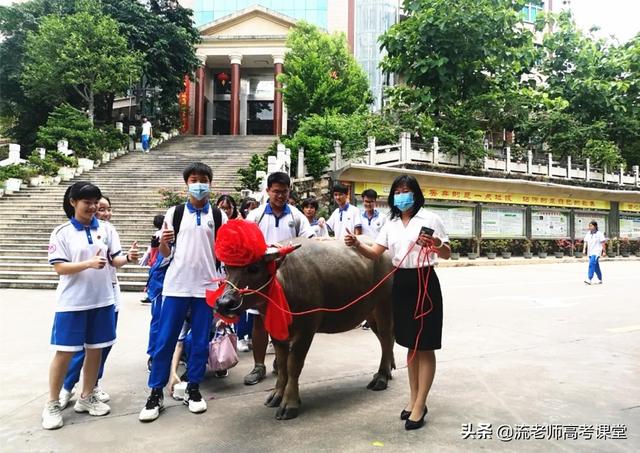 广东茂名高州一名高中生,高考考试发挥不赖,一不小心考了654分,考了全校第一名,考生开心,家长更是开心,为感谢学校对孩子的“栽培”之恩,为让学校改善下食堂伙食,就买了一头牛送给学校。