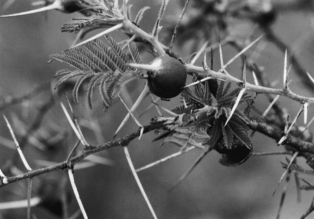 一种基部不膨大,是镰荚金合欢的防御工具。密不透风的长刺让动物们无从下嘴,树叶则在其中得到保护,逃过了动物的牙齿。