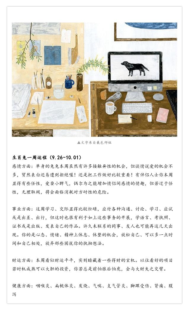 十二生肖一周运程(9月26日-10月1日) 2020年生肖运势