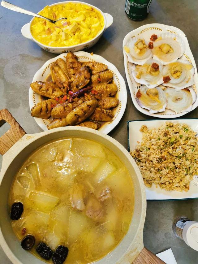 然而,女儿回家后,从网上学了做饭,她做的鸡蛋羹、可乐鸡翅、凉拌麻辣豆腐、蒜蓉粉丝蒸河蚌、排骨冬瓜汤,却让我的父母在平凡的生活中享受到了美妙的感觉,相比在外面餐馆请老人匆匆忙忙吃一顿饭,真是有情调、有意义多了。女儿为这一顿饭耗费了大量的时间和心血,跑到离家有些远的享买乐超市去买菜,回家后又洗菜、蒸煮等等,真是费时费力,然而这其实是值得的。