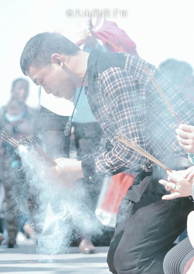 看着一路风尘仆仆的人,内心有种莫名的感动。他们每一次的自愿请香,每一次的虔诚跪拜,每一次的双手合十,每一次的闭目许愿,都触动着我心底深处的那根弦。