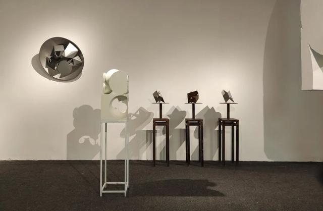 最令本人感动的一幕,就是开幕式前一晚布展完毕准备离开,展厅还剩下最后一盏灯的时候:23件作品几近随机地“停歇”在展厅的四处,在微光的照射下,它们个个都有动人的姿态,包含着激荡的空间,投射下幻化的影子,但它们并没有迎合我,反倒是我被它们的自信所吸引。那时那刻,我自觉自己只是作品的“生父”,日夜辛劳的制作和安装师傅才是它们的“养父”。当我回眸时,我的这些“孩子”们突然长大成熟,个个具有多元的性格魅力,在突如其来的“儿大不由爹”的赞叹之余,本人也收获了别样的欣慰,因为它们早已成为不会附庸于他者的独立的“物”。我凝视着它们,它们好像也抄着手,以严肃的表情在审视着我。