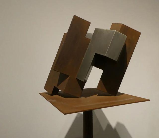 这些多维度体块具有不透明性,一眼难以理解全局,尽管同样是采用几何化语言和工业材料,但构成主义从中心出发的分析逻辑并不适用,创作者并没有寻找一个具有生成能力的核心作为原点来建构物体。这种分离感让人想到大卫·史密斯或迪·苏沃尔的雕塑,没有任何视点赋予作品连续性及因果关联感。但有所不同的是,这种分离感并非体现为雕塑实体的离散,而是呈现为一种建筑空间化的围合,如作品1、8、9、10、13、17所体现的那样,分离的单元又围绕大大小小的多个中心聚合,构成新的体量关系。