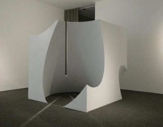 在“OOO”环境中,对象不限于艺术品,还包括观众、画廊空间、文本、照明以及构成环境的无数成分,这些都是物。既然在这里众生平等,人的主体性就被瓦解了。伴随着主体瓦解的还有叙事和意义,当艺术家不再表露情感,不再赋予作品意义,在OOO环境中,现代抽象雕塑的出口之一是让众多的物发生关联。在作品3、5、6、7、16、19、22、23中,卷曲和倾斜的线面之间产生着张力,它们拒绝横平竖直,介于建筑和雕塑之间,回避着奇里达口中诅咒的几何学,让人好奇于复杂性背后的规律。而在作品11、15、17、18中,朱羿郎采用了布尔运算的方式营造正负形态并将之并置,作品11还被放大到建筑尺度,使得观者对物进行直观体验,如同罗伯特·莫里斯的三个L形胶合板那样,打破人们观念中的先验成分。