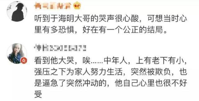 于海明拿到《解除取保候审决定书》后失声痛哭的画面引起众多网友的心酸与同情。