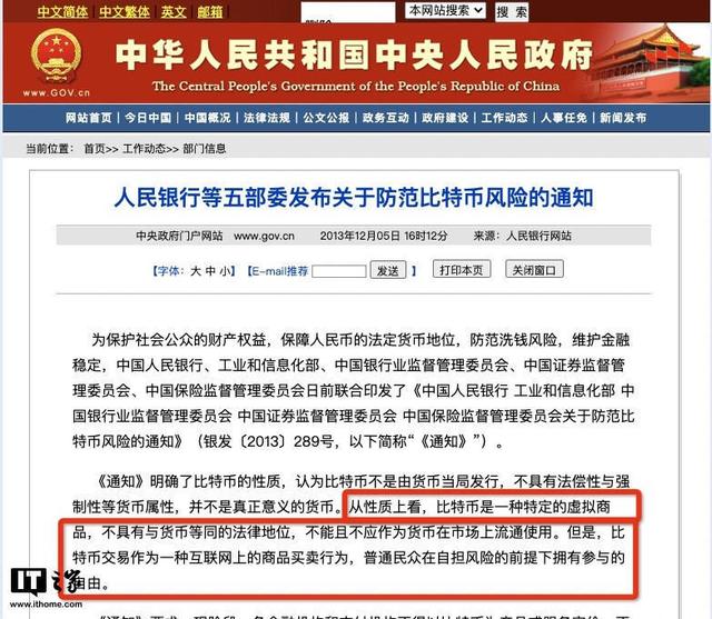 中国在 2013 年的《人民银行等五部委发布关于防范比特币风险的通知》中就明确将比特币认定为一种 “虚拟商品”。