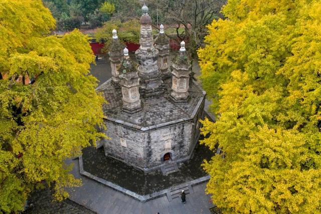 最值得看的是明朝弘治年间的多宝佛塔,平面八角形的塔座上另有四方小塔,环绕着一座喇嘛塔——这样的“五星塔”建筑风格为中国独一。旁边的“护法尊”古银杏需四人合抱,金秋落叶如同“金砖铺地”,美不胜收。前往隆中的公交512、543路都设有广德寺站,再往前3站即隆中景区。