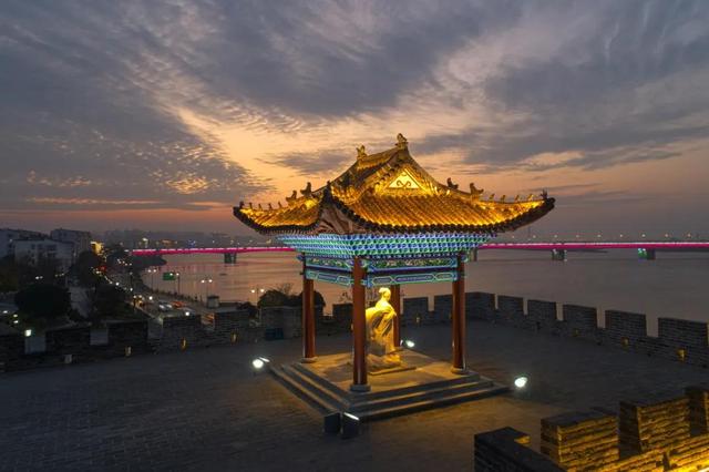 小北门朝南的门匾书着“北门锁钥”,北面则书“临汉门”,附近的小北门广场一到傍晚就很热闹,适合闲坐看街舞、练武、广场舞,还可以下到江边打一场台球。夫人城(门票5元;8:00~17:30)可由小北门旁的登楼口前往,是襄阳城墙唯一开发成景区的,沿着汉江的风景格外迷人。最西端的亭子里立有一个女侠的雕像——她可不是黄蓉,而是历史上确有其人的韩夫人。她是东晋中郎将朱序的母亲,率领着妇女增筑了这道城墙,抵挡住了前秦军队的突袭。东护城河和西护城河的北端有游船出租,可划着船欣赏古城墙。