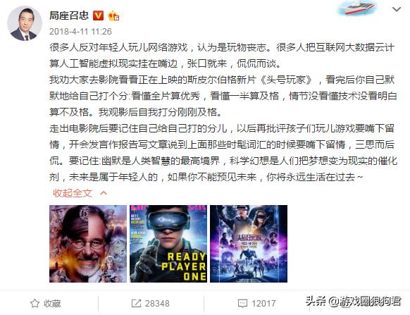 在《张召忠说》的第151期中,局座谈到了电子游戏和VR,先从斯皮尔伯格导演的《头号玩家》说起,表达了人类的进步是需要做梦的,而科学就是将梦境变为现实。许多家长甚至老一辈的人并不认同网络游戏,认为是玩物丧志,却整天将人工智能虚拟现实云计算大数据挂在嘴边。