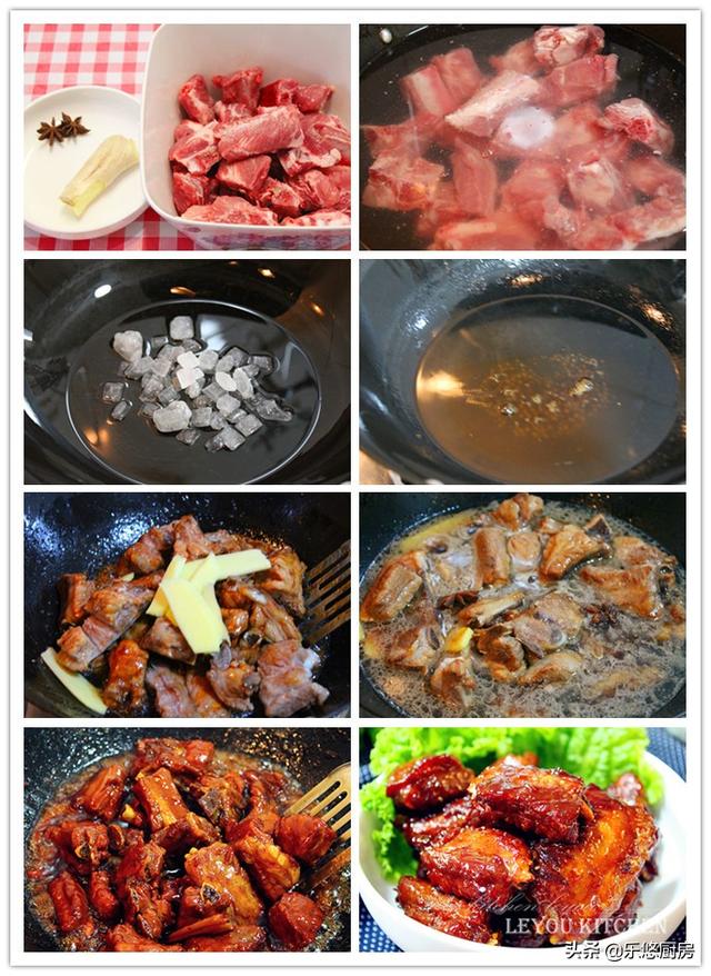 4、炒糖色时可以用冰糖也可以用白糖。用冰糖炖出来的肉颜色更加漂亮。