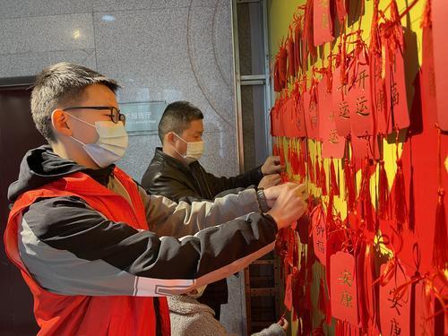博物馆内,市民书写祝福语后贴在祝福墙上。陈金路 摄