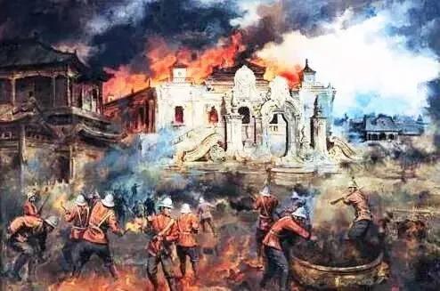 1860年,英法联军攻入北京,清帝逃往承德,英法联军闯入圆明园并掠夺珠宝、将其焚毁。