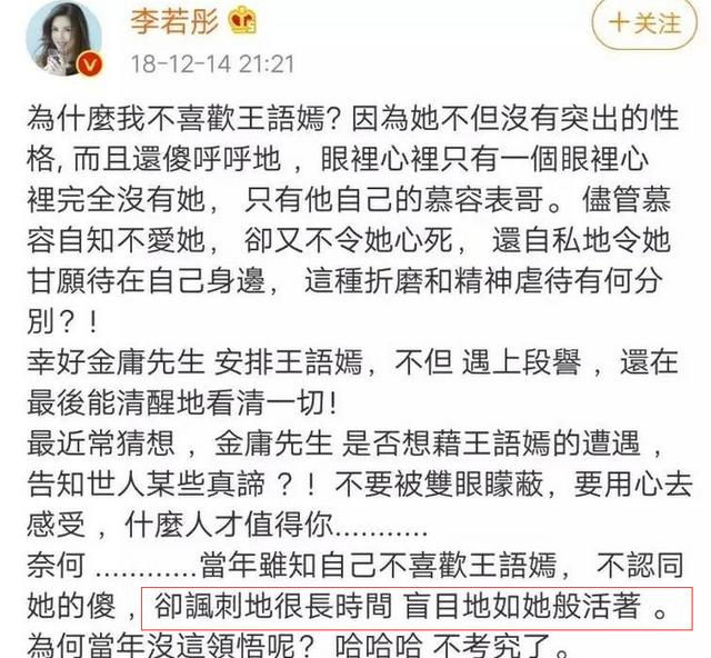 此时的李若彤没有选择离去,反而在公开场合表示: