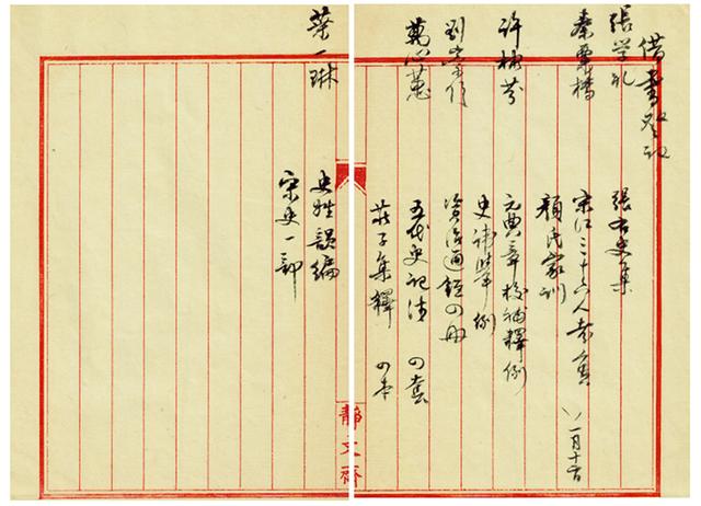 据《(民国三十年度)私立辅仁大学一览》所载《学则》,三十年度第一学期的课程,学期试验是三十一年(1942)二月二日至七日,寒假是二月九日至二十二日。(第2页)故笔者推测,柴先生在1941年度上学期的“中国历史研究法”课上,向诸生盛赞过余嘉锡这篇《宋江三十六人考实》。秦粟桥在旁听柴先生此课后,遂向老师借阅此文抽印本,同时还借阅了《颜氏家训》,柴先生所书“一月十二日”当即1942年一月十二日。在这份借书单后,柴先生写下了《潜知斋读书记》最后一则札记,即《宋史》卷二六一:“刘重进,以习契丹语,应募使北边。”因此,《潜知斋读书记》的下限,当为1942年春。虽不中亦不远矣。