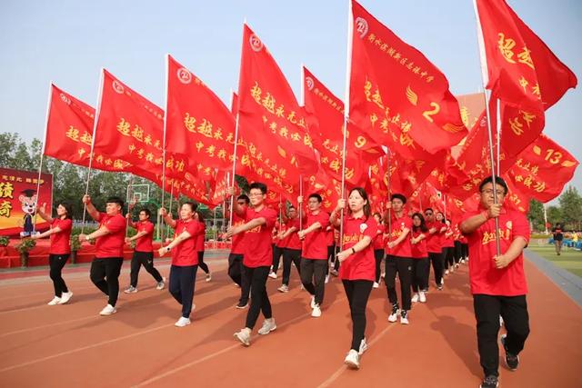 旌旗招展,呐喊震天,中考动员,意志弥坚。随着一句“2021中考我们来了”,动员大会拉开序幕。老师们身着统一的加油服装,高举必胜的大旗,昂首阔步走到学生方阵中,为学生们加油助威!
