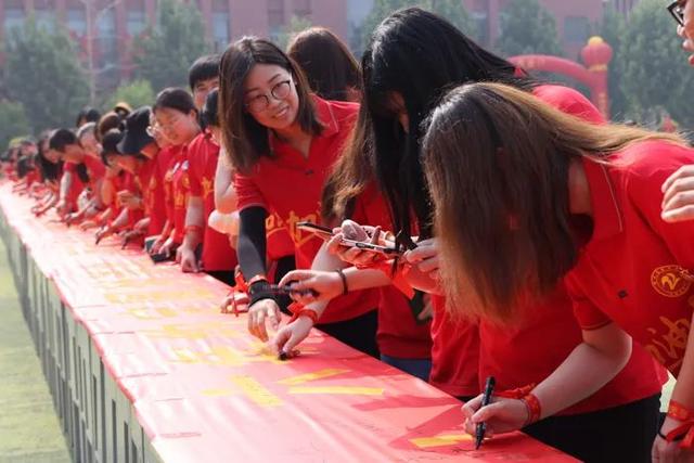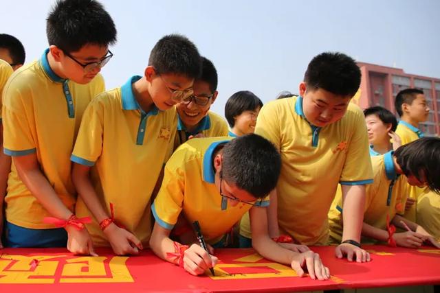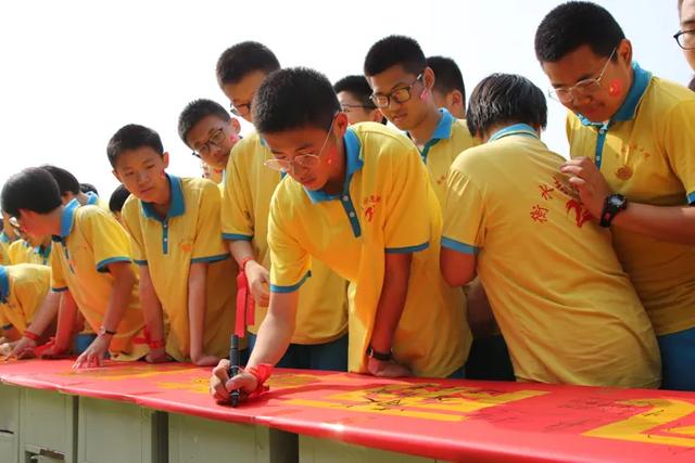 志臻学子们在迎战中考的条幅上签上名字,许下誓言。希望每一位学子都能不负众望,不负青春梦想,顽强拼搏,全力以赴,共创辉煌!