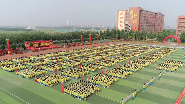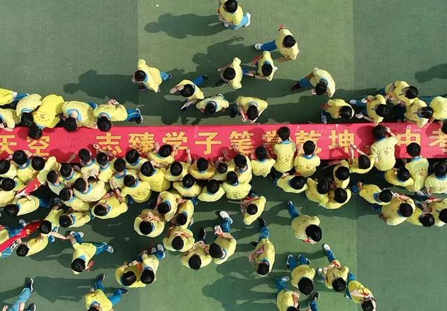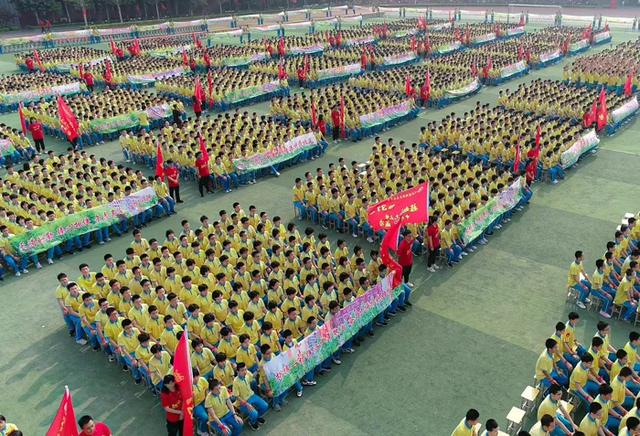 胸有凌云志,百炼方成钢。中考,是初三学子人生中的第一次检阅。初三各班带着条幅陆续上场,站成一个个整齐的方阵。