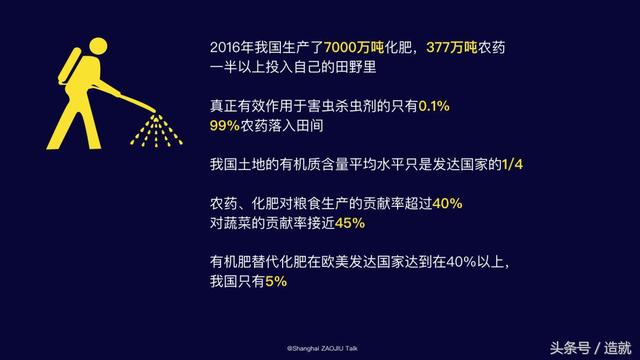 2016年,我国生产了7千万吨化肥和370万吨农药,除了一半出口以外,另外一半撒到了我们的土壤和水流里,它们是更严重的看不见的“雾霾”,隐秘地威胁着我们的健康。