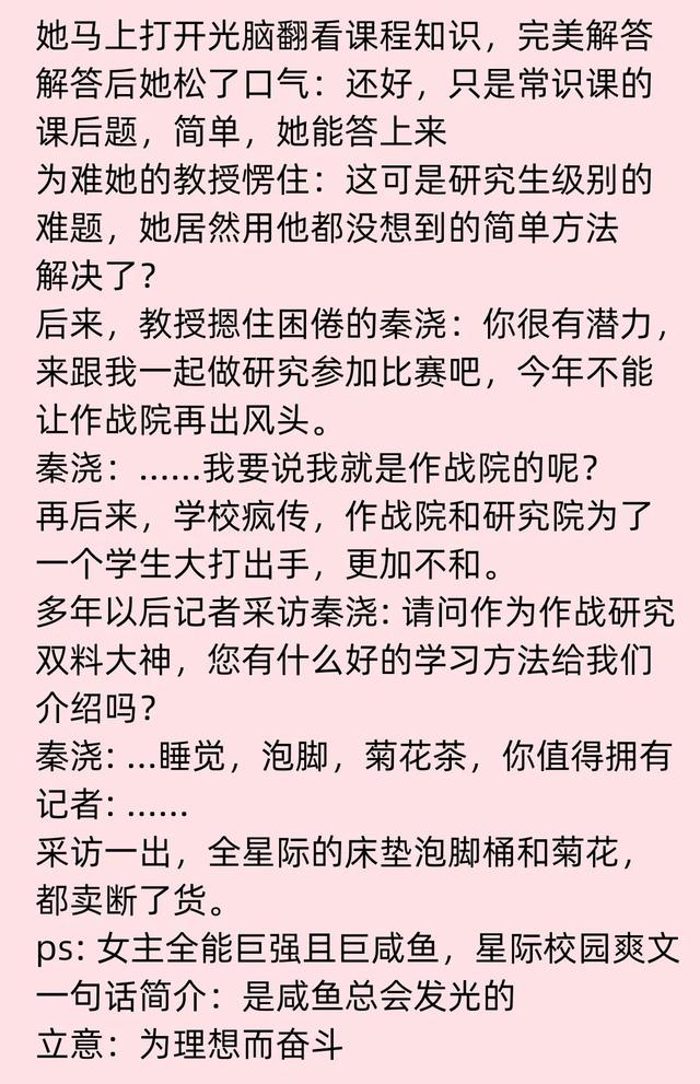本文叙述流畅优美,设定完整新颖,创造出一个辉煌宏大的星际世界,讲述了女主追求力量、探寻宇宙奥秘、并收获爱情、完善自我的成长故事,是一篇充满想象力的星际玄幻佳作。