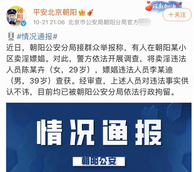 没过多久,官方就给我们解惑了:嫖娼人员李某迪(男,39岁),被抓。