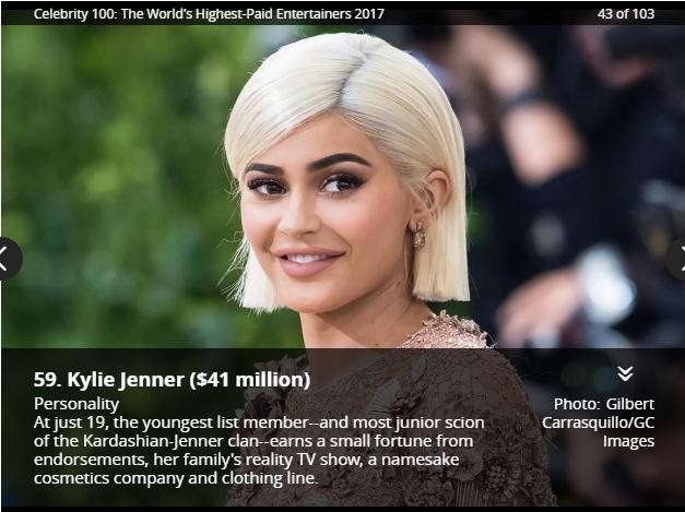 惊讶吗?只能说,略。毕竟今年6月福布斯一年一度的TOP100全球名人收入榜出炉,小小妹以19岁的年纪,成功晋身榜单并成为其中最年轻的女土豪:从2016年6月到2017年6月,小小妹净赚4100万美金,排位59。今年这份榜单唯一上榜的中国面孔是成龙大哥,4900万美金,领先小小妹20个身位。