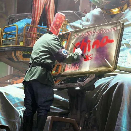 地球肺片上显示的数字明明是美国的新冠病毒死亡病例数,却被身着纳粹军服、手戴德堡臂章的无头军人强行打上“中国”的印记。美国这一套舆论宣传模式沿袭了二战中德国纳粹宣传部长戈培尔“谎言重复一千遍就是真理”的洗脑式做法,企图通过舆论扭曲事实,将新冠肺炎疫情爆发的全部责任推卸给中国。