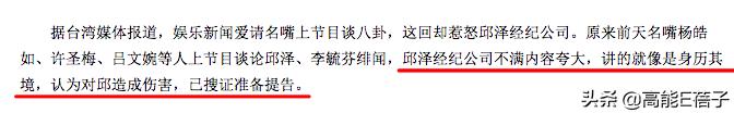 当时还有很多娱乐节目大谈两人的恋情,邱泽的经纪公司海纳百川不满一些节目内容夸大,还发出律师函警告。