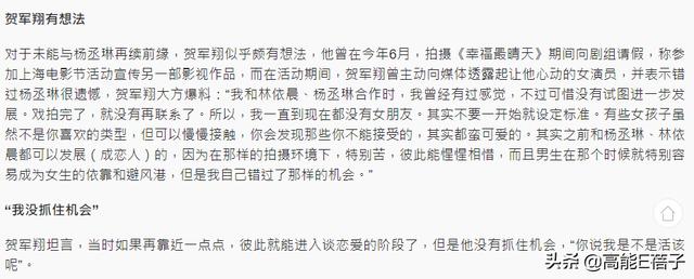 只是杨丞琳因为言论问题被内地剧弃用,《幸福最晴天》女主换成了张钧甯,贺军翔谈起杨丞琳倒大方爆料:“我和林依晨、杨丞琳合作时曾有过感觉……如果当时再靠近一点点就能进入恋爱阶段了。”