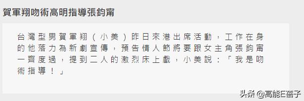 不过一进入拍摄,贺军翔又说自己是张钧甯的“吻术指导”。