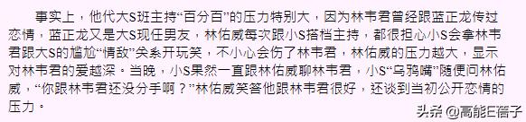 但之后大家都知道了,蓝正龙和大S交往,林韦君这段也存在感不高。