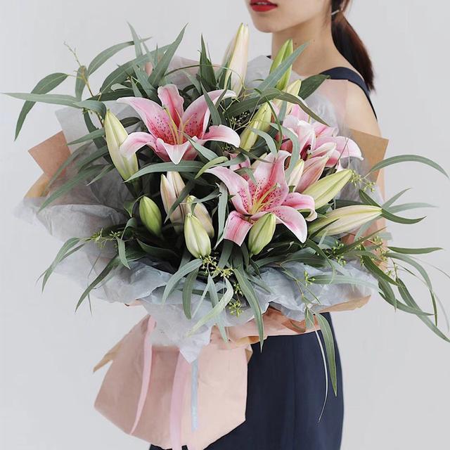 百合可以组合在一同做成花束,也是十分的大气美丽。百合的花语是心想事成、祝愿、高尚,红百合代表永远爱你,白百合代表心心相印,香水百合代表纯洁。