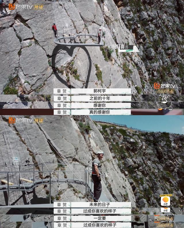 比如章贺、郭柯宇,他们见面后一直在回避,连话都没有说几句。但提及对方,要么默默流泪,要么投去期待的目光。在高空攀岩时,章贺脱口而出对前妻的祝福:“之前的十年,感谢你,未来的日子,一定要过成你喜欢的样子。”
