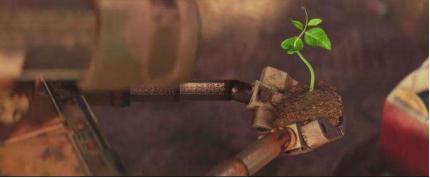 当人类离开地球之后,地球上的生命几乎绝迹,而返回地球的前提便是有绿色植物,这对人类来说有这重大的意义!而小草也是让瓦力遇见伊娃的一个前提,也是推动瓦力去追寻爱情的一个重要划分。