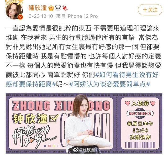 阿娇表示:自己一直认为爱情应该是纯粹的东西,不需要过多的道理和理论来堆砌。在我看来,男生的行动胜过一切语言。也许每个人对好感的定义不同,每个人的恋爱节奏有快有慢,但我觉得谈恋爱让彼此都开心,简单点就好。