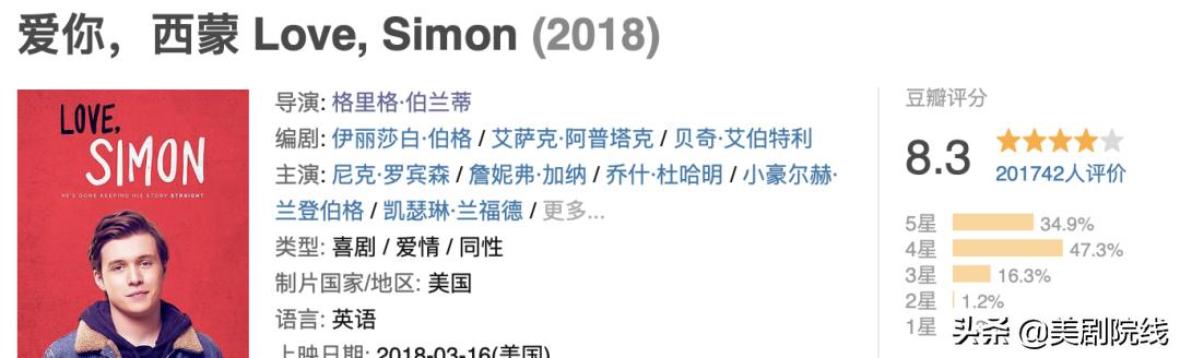 2018年,一部小成本制作的电影《爱你,西蒙》登上荧幕,讲述青少年深柜中挣扎的青春校园故事。
