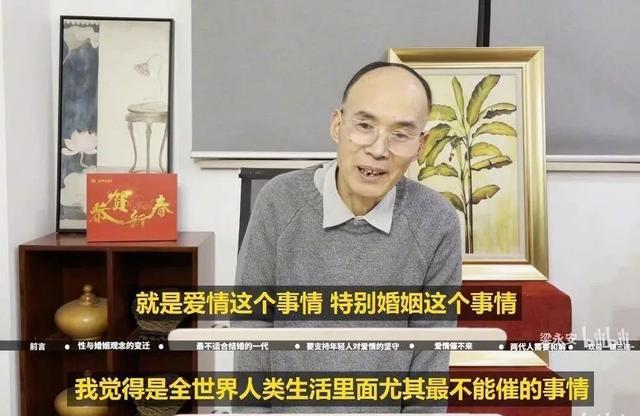 “我们的时代处于转型之际。原来农业社会里的恋爱很简单,都是父母之命。1980年之后实行独生子女政策,物质条件提升,如今在爱情关系里边,实际上很多人不是在谈爱情,而是在谈婚姻,按照婚姻的条件来谈爱情,也不懂什么叫真正相爱。”