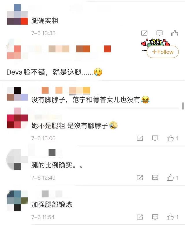 可没想到已经这么美了,还是经不住网友们的“高要求”。“腿粗”、“腿的比例不行”、“没脚脖”都是会出现在Deva美图下的评论。