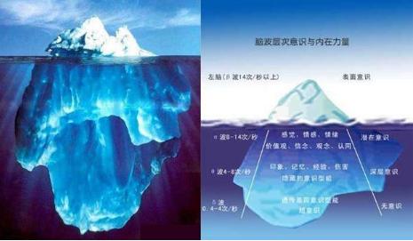 在心理学里,我们把人的意识分为“显意识”和“潜意识”两部分,前者20%,后者80%。它们组成了你现有的思维,并且在你的生活中相互作用。在生活里面我们是绝对察觉不到潜意识的存在的,但是它仍旧在无时无刻的改变着你的行为方式和思维变化。把心灵比喻为一座冰山,浮出水面的是少部分,代表显意识,而埋藏在水面之下的大部份,则是潜意识。