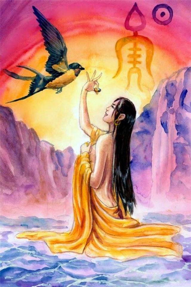 简狄怀卵一年方妊娠14个月后,生下殷商的始祖契。