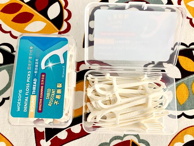 屈臣氏的圆形牙线棒就很好用,物美价廉,我在京东屈臣氏官旗店买的12盒64元,每盒5.3元,一盒50支,每支成本才1毛钱!