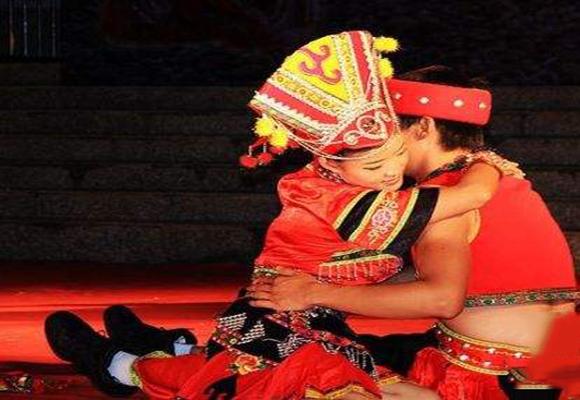 土司派人找阿母尼惹,找到树下,看见树上系着一根五色彩带,两边吊着两个人。
